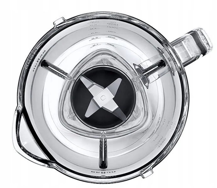 - miesza wszystkie rodzaje żywności; dzięki trójkątnemu słoikowi nie ma martwych plam, a składniki szybciej wracają do strefy mieszania