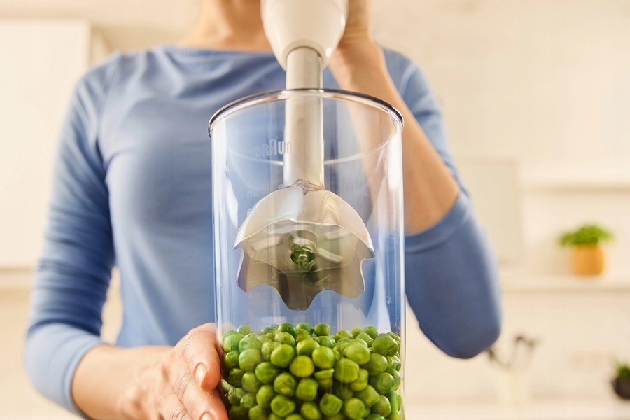 - Wyposażony w wytrzymały silnik o mocy 900 W, umożliwia błyskawiczne przygotowanie zdrowych koktajli na śniadanie, owocowych smoothie pełnych witamin, aksamitnych zup kremów, gładkich sosów, aromatycznych dressingów, marynat do mięs i ryb, musów, przecierów, dań dla dzieci oraz wielu innych pysznych propozycji dla całej rodziny.