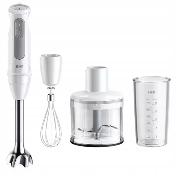 - Załączone wyposażenie:Końcówka do ubijania, szatkownica, pojemnik z miarką 600 ml,