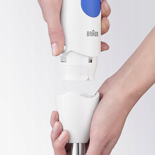 - Blender ręczny Braun wyposażony jest w system EasyClick, który umożliwia łatwą i szybką wymianę przystawek za pomocą jednego kliknięcia.
