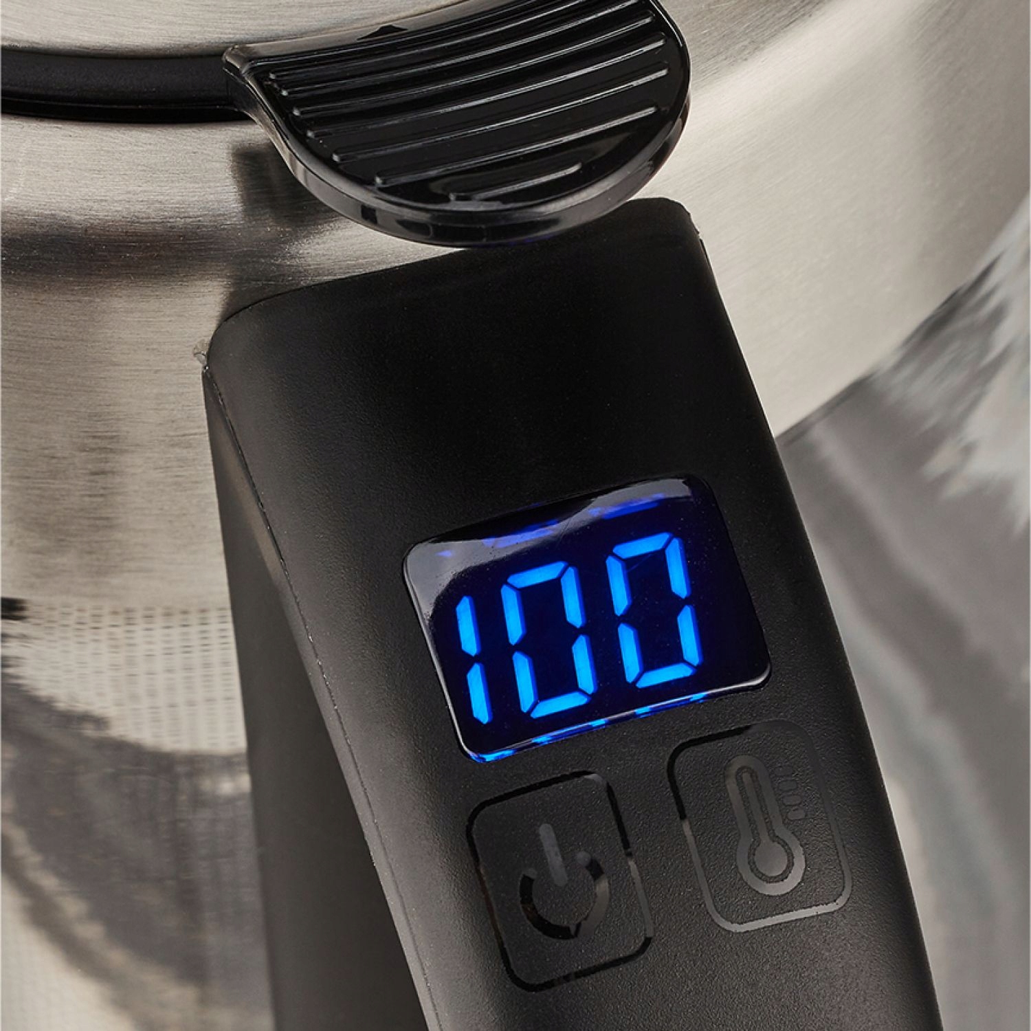 - Moc maksymalna 2200 W oraz płaska grzałka płytowa pozwalają na szybkie zagotowanie wody.