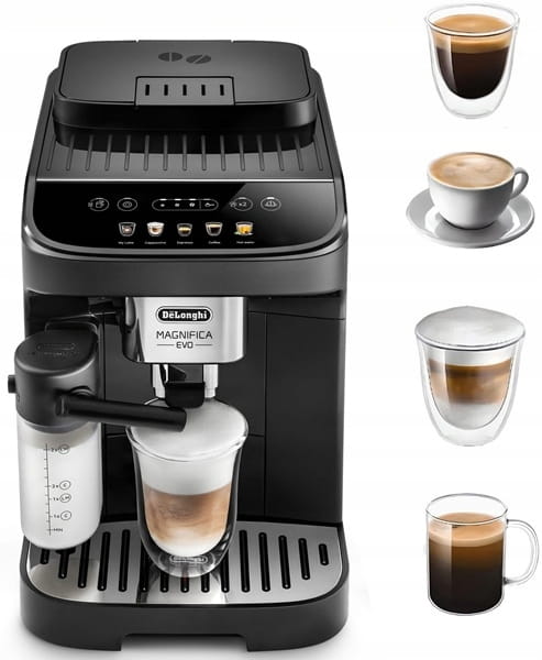 Magnifica Evo uosabia doświadczenie De'Longhi za sprawą oryginalnych drinków i eleganckiego, nowoczesnego stylu. Podawaj idealne włoskie espresso i inne napoje z kremową, mleczną pianką dzięki LatteCrema Hot Technology. Wybierz jeden z 4 napojów za pomocą prostego interfejsu użytkownika oraz korzystaj z funkcji automatycznego czyszczenia za jednym dotknięciem.
