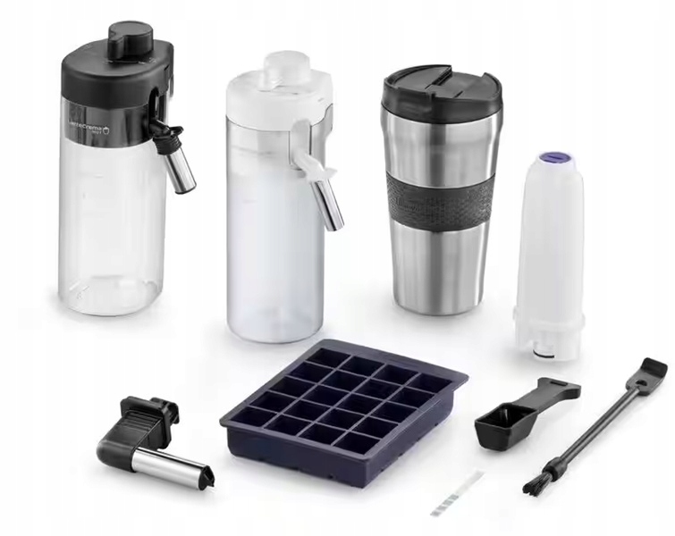 - Funkcje: Sterowanie smartfonem, Dotykowy ekran, Funkcja Moja Kawa, Pojemnik na mleko, Regulacja ilości zaparzanej kawy, Regulacja mocy kawy, Parzenie 2 kaw jednocześnie, Regulacja stopnia zmielenia kawy, Regulacja temperatury kawy, One Touch Cappuccino, Wbudowany młynek, Spienianie mleka, Wskaźnik poziomu wody, Filtr, Spienianie mleka na zimno, Kawa na wynos