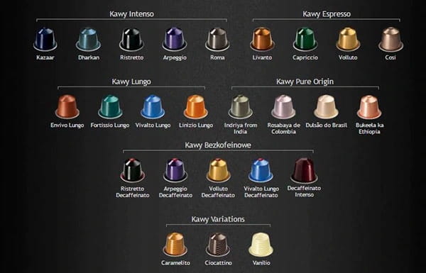 - Nespresso oferuje bardzo dużą gamę kaw dostępnych na rynku. Ekspres umożliwia zrobienie takich kaw jak np. Espresso, Latte Macchiato czy Lungo, dzięki czemu każdy domownik znajdzie idealny dla siebie typ kawy