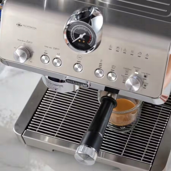 - Inne: ostrzeżenie o niskim poziomie wody w zbiorniku, wbudowany ubijak do kawy, wskaźnik ciśnienia