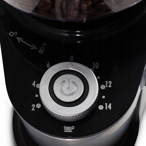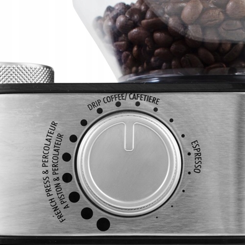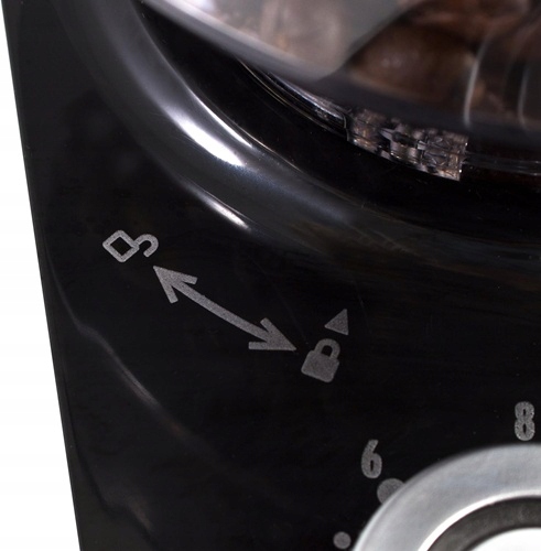 - Z boku urządzenia znajduje się drugi pokrętło, za pomocą którego można samodzielnie określić indywidualny stopień mielenia.