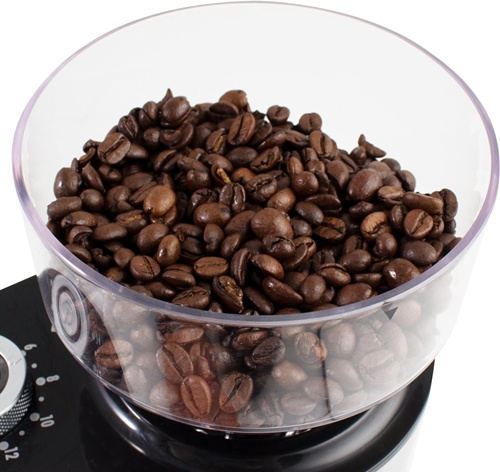 - Lejek do ziaren kawy można łatwo otworzyć i napełnić, mieści do 200 g całych ziaren.