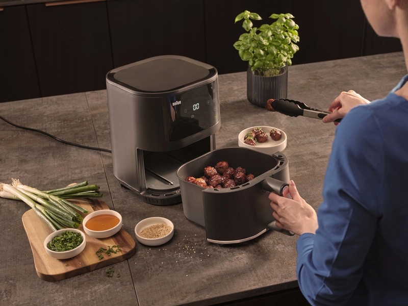 - Brzmi jak kulinarne marzenie… A przecież specjalistą w ich urzeczywistnianiu jest Braun! Nowa frytkownica beztłuszczowa marki – MultiFry 3 nie tylko je spełnia, ale też jest szybsza niż tradycyjny piekarnik oraz nie wymaga wstępnego nagrzewania, co sprawia, że przyrządzanie pysznych, pełnowartościowych dań zajmuje 2 razy mniej czasu!*