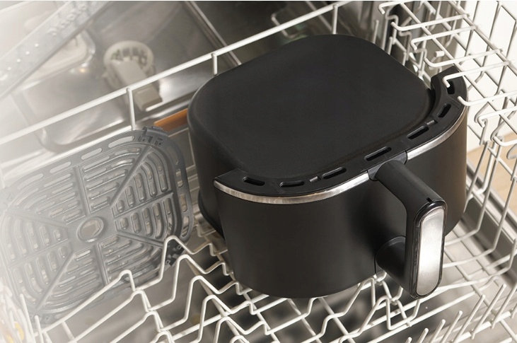 - Szuflada z powłoką zapobiegającą przywieraniu oraz ruszt łatwo wyjąć z urządzenia i można je wygodnie myć w zmywarce.