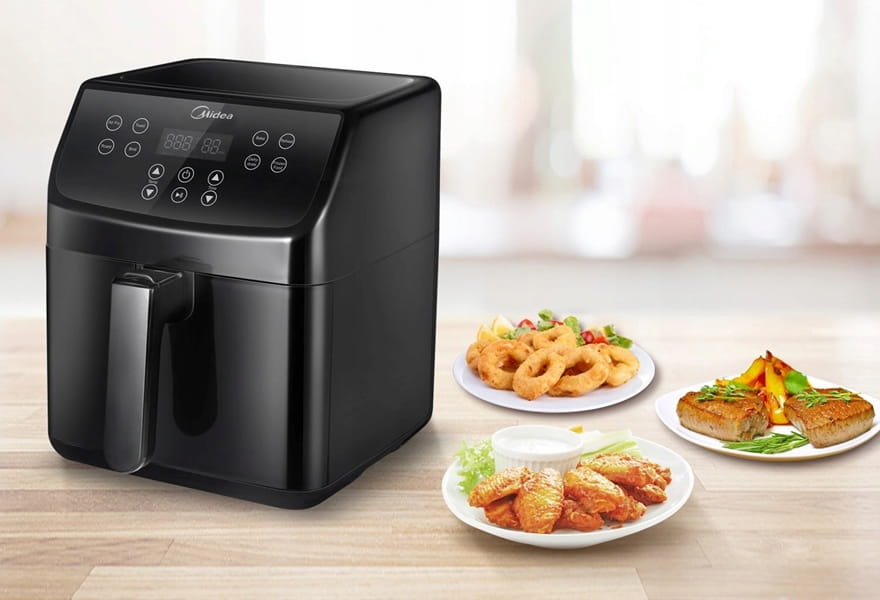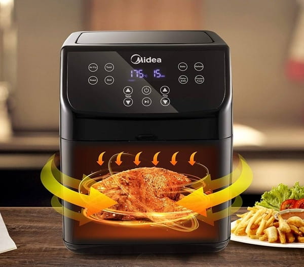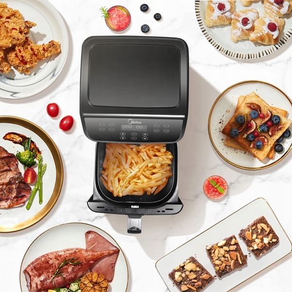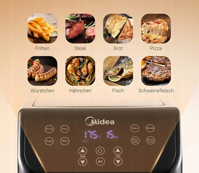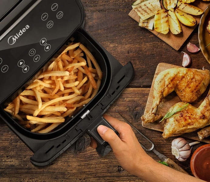 - Szybka i zdrowa Frytkownica powietrzna Midea cyrkuluje bardzo gorące powietrze wokół jedzenia, dzięki czemu gotuje się równomiernie i zatrzymuje wilgoć, co prowadzi do nieporównywalnej chrupkości. Dodatkowo oszczędza do 80% mniej oleju niż tradycyjne smażenie.