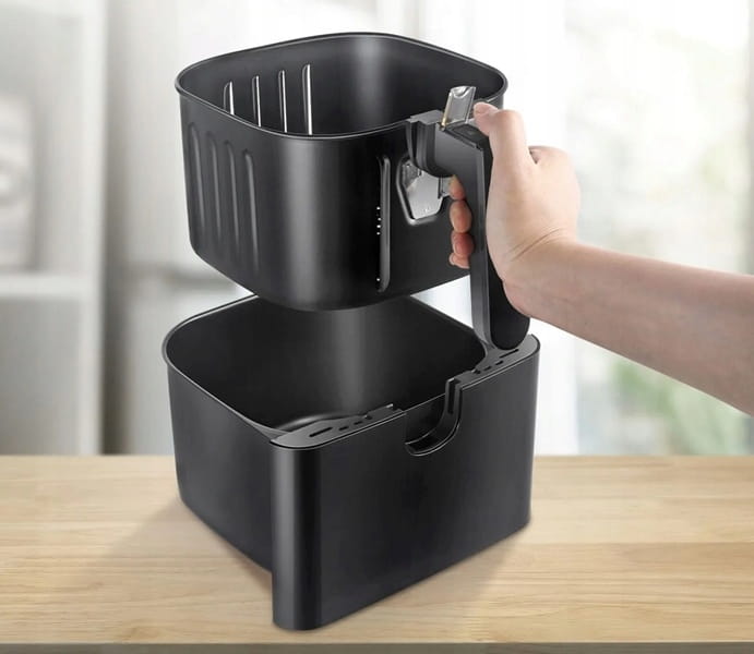 - Duża pojemność 5,5 litra pozwala na szybkie przygotowanie zdrowych i smacznych posiłków dla całej rodziny. Jest nawet miejsce na całego kurczaka.