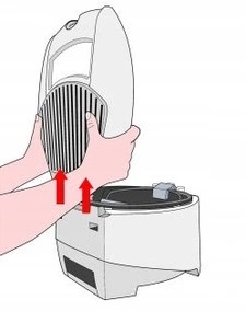 - Utrzymanie urządzenia w czystości jest bardzo łatwe, dzieki możliwości zdjęcia górnej pokrywy, którą razem z koszem można umyć w zmywarce