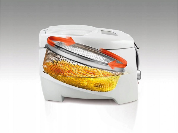 - Obrotowy kosz frytkownicy pozwala na smażenie potraw w mniejszej ilości tłuszczu, dzięki czemu frytki będą teraz smaczniejsze i zdrowsze.