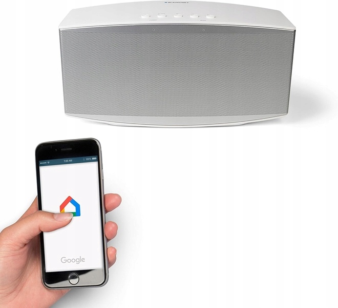- dzięki wbudowanemu Chromecast można łatwo i wygodnie połączyć kilka głośników obsługujących Chromecast za pomocą aplikacji Google Home i jednocześnie odtwarzać muzykę w wielu pomieszczeniach.