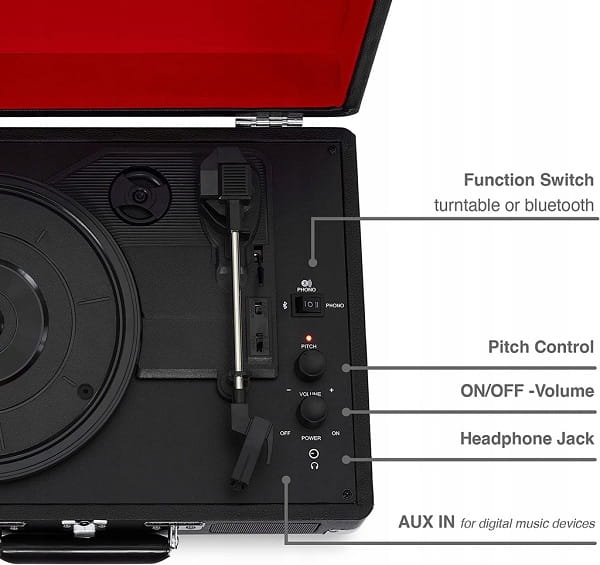 - Wyposażony w pełnozakresowe głośniki stereo, Bluetooth, wyjścia słuchawkowe i RCA do indywidualnego słuchania, Cruiser Deluxe może dostosować się do każdej konfiguracji. Silnik z napędem paskowym i diamentowy trzpień zapewniają wysoką jakość odtwarzania dźwięku, a dźwignia zabezpieczająca chroni trzpień i płyty, dzięki czemu uzyskujesz niezmiennie wysoką jakość i trwałość.