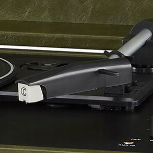 - Aby poprawić jakość dźwięku, ramię jest wyposażone w przetwornik dźwięku z ruchomymi magnesami i igłę NP-15.