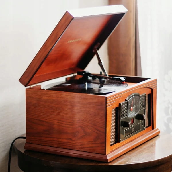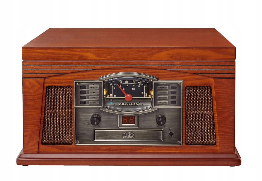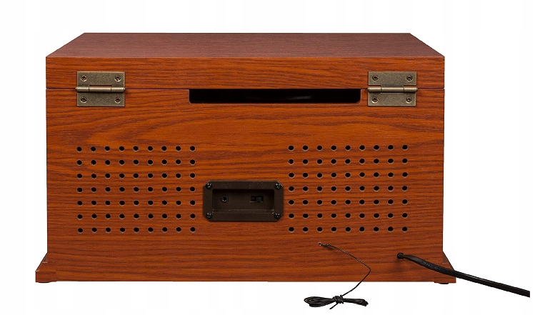 - Obudowa w stylu antycznym ma atrakcyjne detale z grilla i tarczę lotniczą, a w niej mieszczą się pełnozakresowe głośniki stereo, odtwarzacz CD, radio AM/FM i trzybiegowy gramofon, który zaspokoi wszystkie Twoje klasyczne potrzeby związane z płytami winylowymi.
