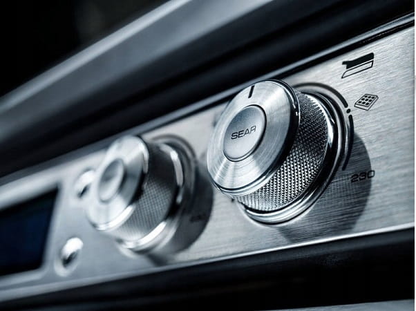 - Dwa oddzielne termostaty z dwoma niezależnymi pokrętłami na panelu kontrolnym pozwalają na ustawienie temperatury każdej płyty, co zapewnia absolutną precyzję grillowania oraz umożliwiają jednoczesne grillowanie składników, wymagających różnych wysokości temperatury.