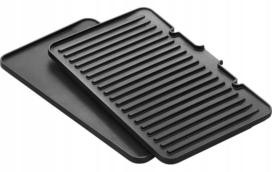 - Płyty grillowe doskonale sprawdzają się przy przygotowywaniu mięsa i warzyw natomiast gładkie są idealne do smażenia boczku, jajek, naleśników czy ryb.