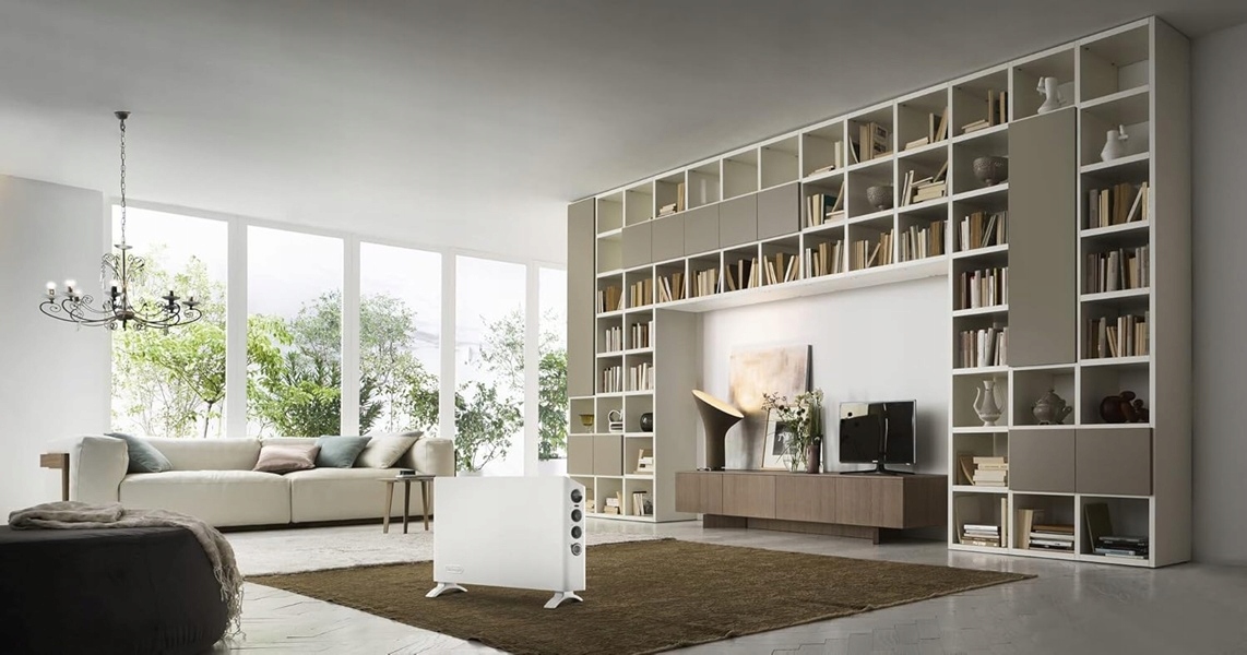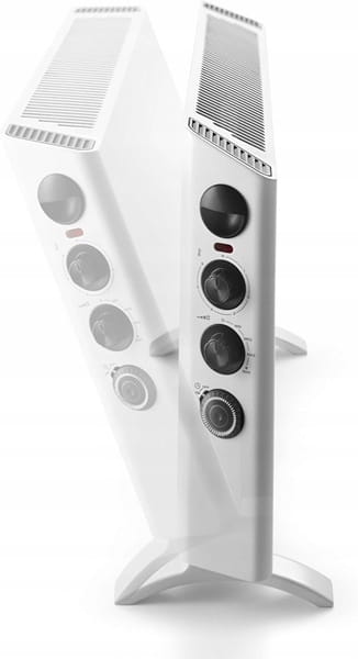 - urządzenie zasysa od dołu zimne powietrze, które rozgrzewa się po zetknięciu z grzałką elektryczną, a następnie dzięki konwekcji jest równomiernie rozprowadzane po pomieszczeniu, dzięki czemu powietrze pozostaje cały czas w procesie cyrkulacji.