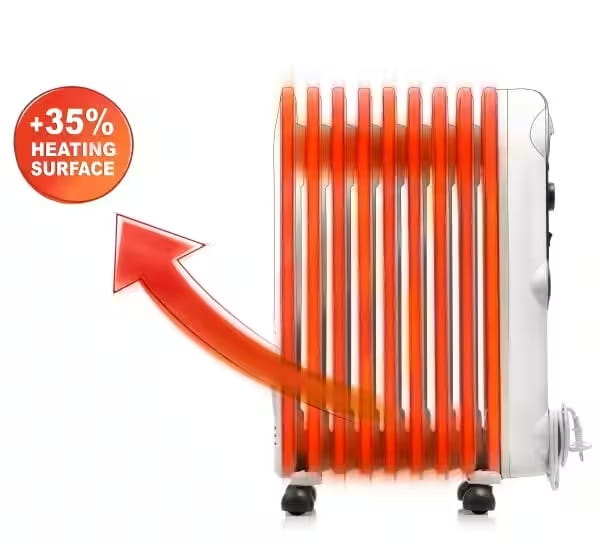- Ekskluzywny grzejnik olejowy z 9 elegancko zabudowanymi żeberkami oraz zwiększoną emisją ciepła o 35%.