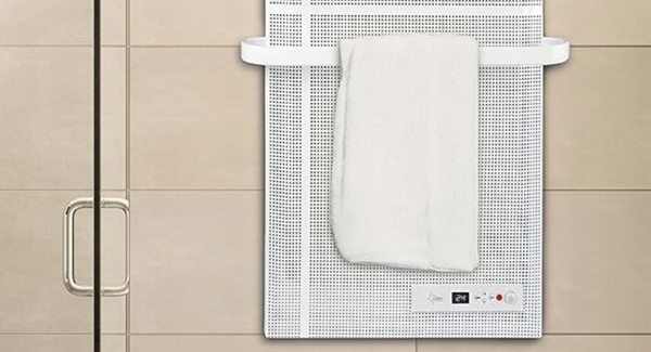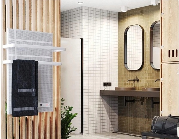 Nawet w szatniach, ten mały i cichy grzejnik elektryczny z wieszakiem na ręczniki zapewnia przyjemny klimat w pomieszczeniu.
