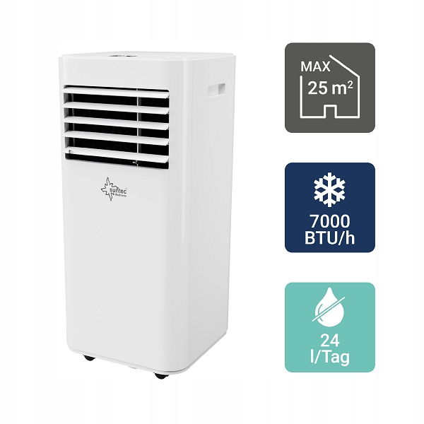 - Wydajność chłodnicza 7000 BTU / 2100 W do chłodzenia pomieszczeń do 25 m²