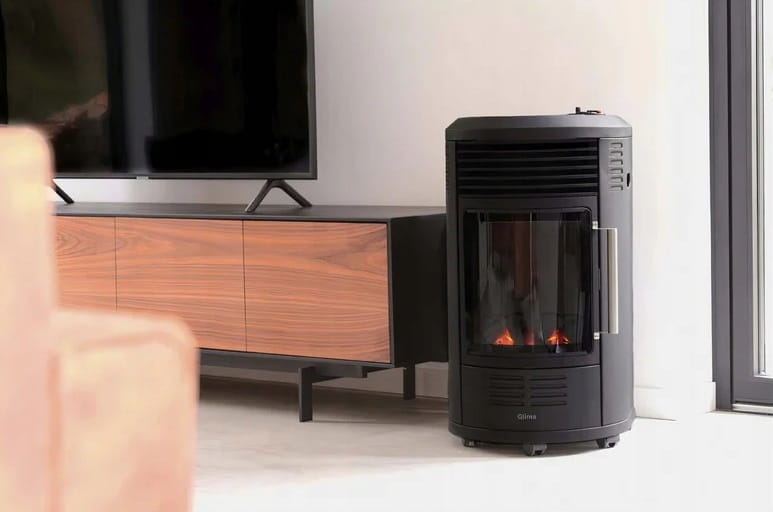 - Model GH8034 jest wyposażony w kółka, więc gdy chcesz przesunąć piecyk, wystarczy go przetoczyć.