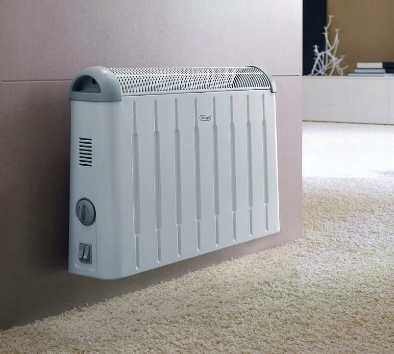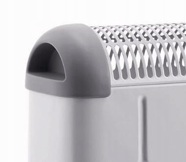 - Urządzenie zasysa od dołu zimne powietrze, które rozgrzewa się po zetknięciu z grzałką elektryczną, a następnie dzięki konwekcji jest równomiernie rozprowadzane po pomieszczeniu
