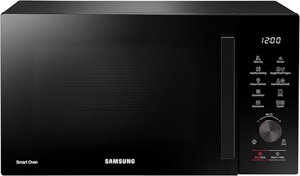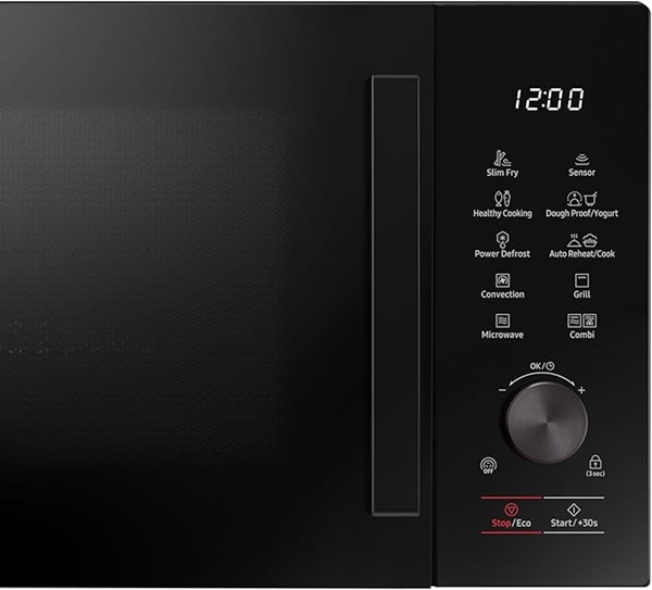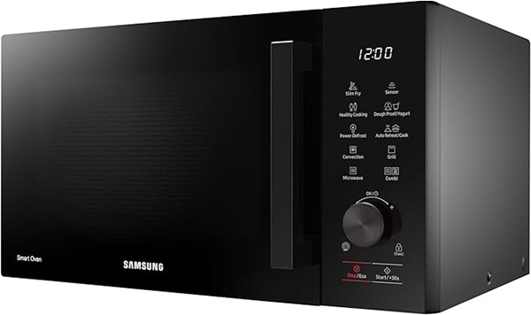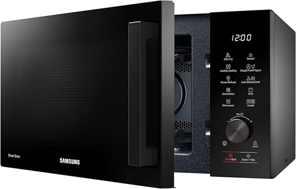 - Dzięki technologii Slim Fry w kuchence mikrofalowej Samsung MC28A5137KK gorące powietrze otacza jedzenie, sprawiając, że jest chrupiące na zewnątrz i miękkie w środku, a wystarczy odrobina oleju.