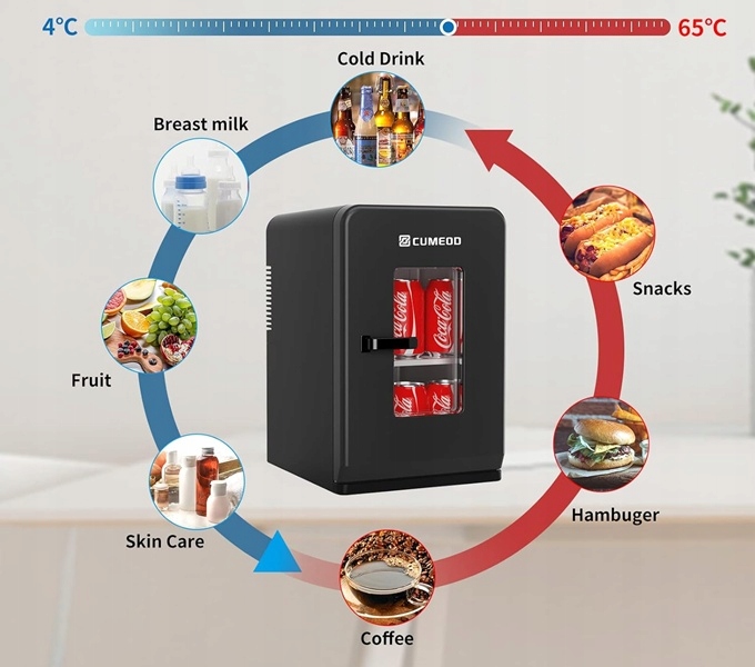 - łatwe przełączanie między trybem ciepłym i zimnym mini lodówki.