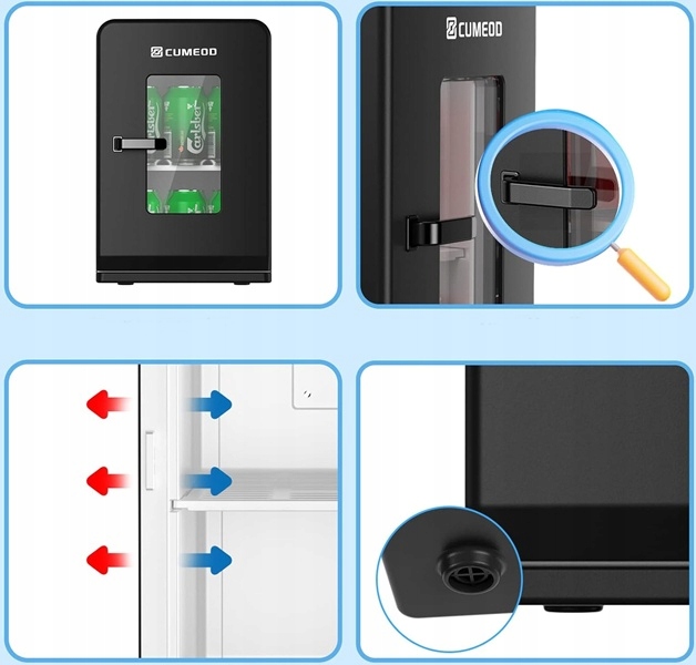 - mini lodówka może być używana w sypialniach, biurach, akademikach, klasach szkolnych, samochodach, w podróży itp.