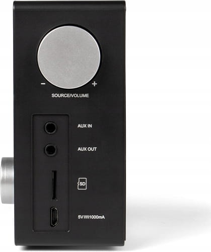 - Jest wyposażony w gniazdo kart SD, wejście AUX i wyjście Aux Out/słuchawki.