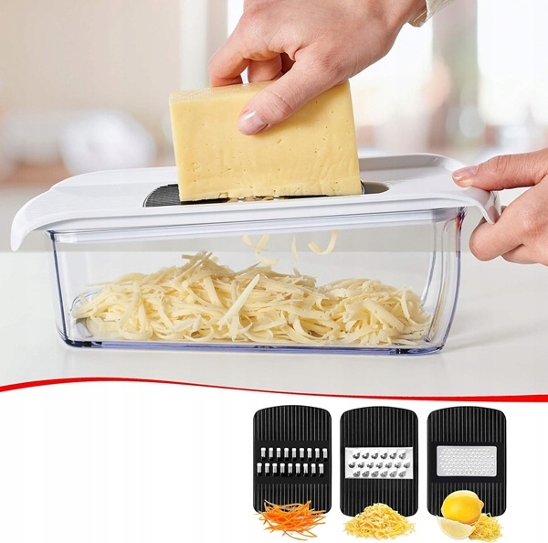 - Doskonale sprawdzi się do szatkowania kapusty, przygotowywania frytek z ziemniaków i wielu innych potraw.