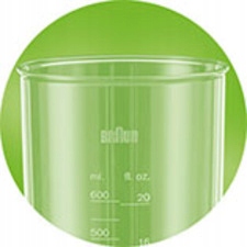 - dodatkowo blender został wyposażony w praktyczny mniejszy kielich z miarką o pojemności 0,6l umożliwiający przygotowanie aksamitnych zup, kremów i sosów