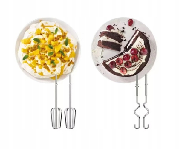 - W zestawie trzepaczki i haki do ciasta.