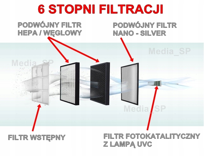 - Częściowo przefiltrowane powietrze przeprowadzone jest później przez FILTR HEPA o dużej powierzchni filtracyjnej wykonany ze specjalnego papieru harmonijkowego, który usuwa nieczystości o wielkości do 0,3 mikronów, łącznie z dymem z papierosów , kurzem domowym i pyłkami.