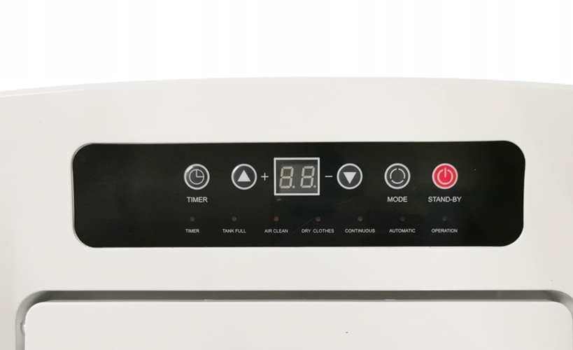 - Oprócz regulowanej wilgotności powietrza w pomieszczeniu (30-80%) za pomocą higrostatu, na wyświetlaczu LED można wybrać 4 różne tryby osuszania.