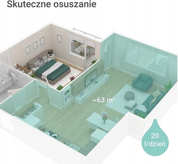 - Osuszacz do pomieszczeń do 150 m3 (~ 63 m2)
