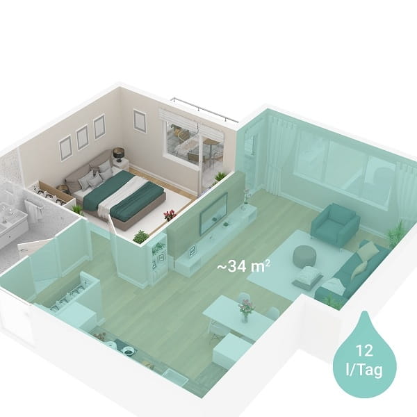 - Osuszacz i oczyszczacz powietrza oraz suszarka do ubrań w jednym – przyjemnie i cicho pracujący osuszacz zapewnia klimat sprzyjający dobremu samopoczuciu.