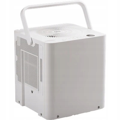 - Urządzenie ma nietypową, kwadratową budowę, która sprawia, że jest łatwe do przechowywania (np. w szafie lub kącie pomieszczenia). Mimo dużej wydajności, nie zajmuje dużo miejsca i prezentuje się bardzo nowocześnie – będzie pasować do nowoczesnych wnętrz.