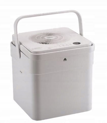 - Urządzenie ma nietypową, kwadratową budowę, która sprawia, że jest łatwe do przechowywania (np. w szafie lub kącie pomieszczenia). Mimo dużej wydajności, nie zajmuje dużo miejsca i prezentuje się bardzo nowocześnie – będzie pasować do nowoczesnych wnętrz.