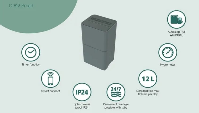 - Osuszacz Qlima D 812 Smart radzi sobie z nadmiarem wilgoci zarówno w małych, jak i dużych pomieszczeniach.