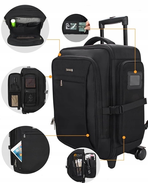 - Plecak na kółkach ma kilka kieszeni.