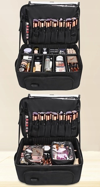 - Ten plecak kosmetyczny na wózek może być używany podczas podróży i może pomieścić więcej kosmetyków.