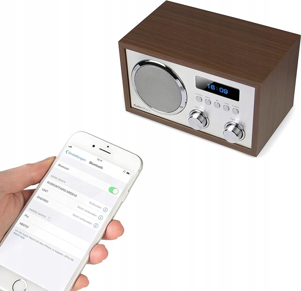 - Elegancki radioodbiornik w obudowie z drewna do odbioru w zakresach FM.