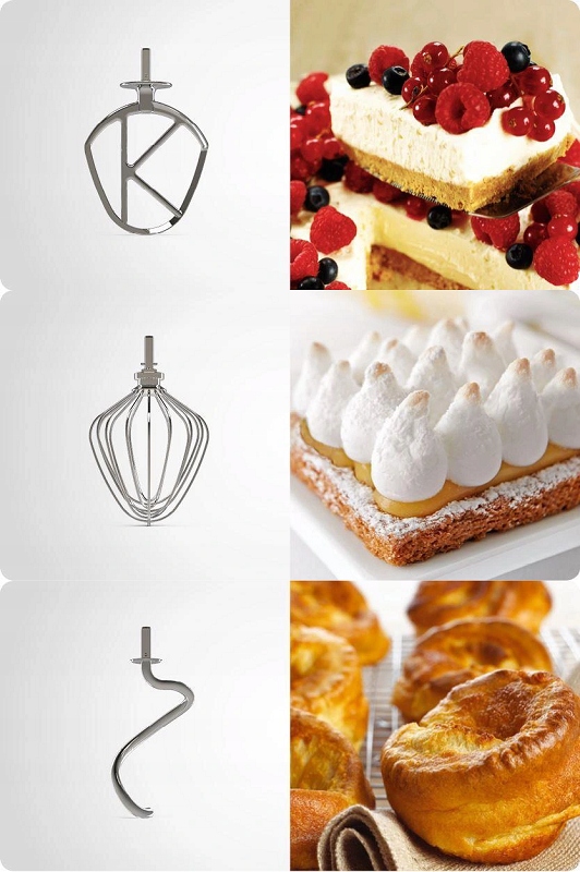 - umożliwi przygotowanie ciast np. biszkoptowego, piaskowego lub makaronowego, ciasteczek, cukierków, różnego rodzaju nadzień i farszów, puree oraz wielu innych dań.