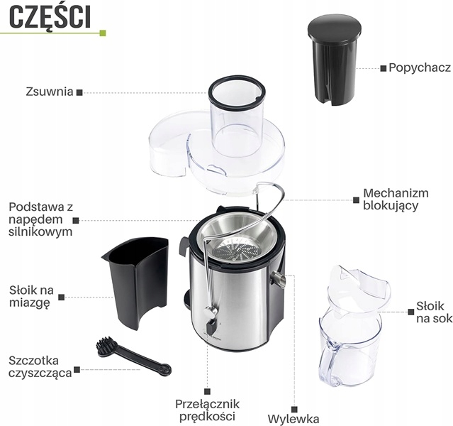 - Wyciskarki do soków warzywnych są proste w montażu i czyszczeniu, wykonane z najlepszych materiałów (stal nierdzewna, plastik wolny od BPA), zabezpieczone ramieniem blokującym i zabezpieczeniem przed przegrzaniem.