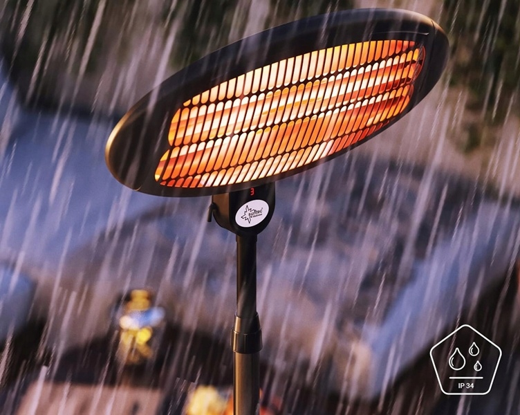 - Zgodnie z IP34 promiennik węglowy SUNTEC jest ze wszystkich stron chroniony przed bryzgami wody i idealnie nadaje się do użytku na zewnątrz.