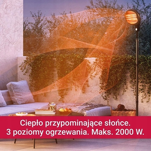 - Elektryczny promiennik Night Sun 2000 outdoor stanowi niezawodne źródło ciepła na zewnątrz podczas chłodnych wieczorów.
